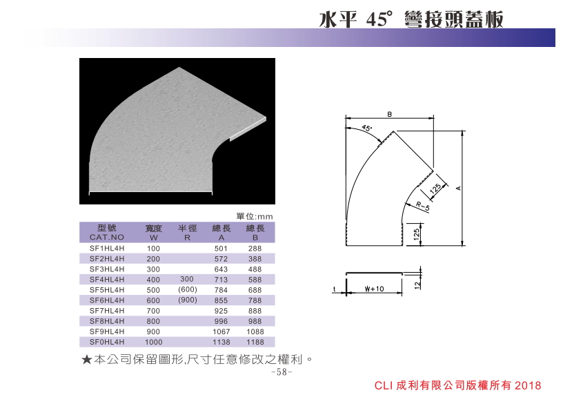 水平45゚彎接頭蓋板