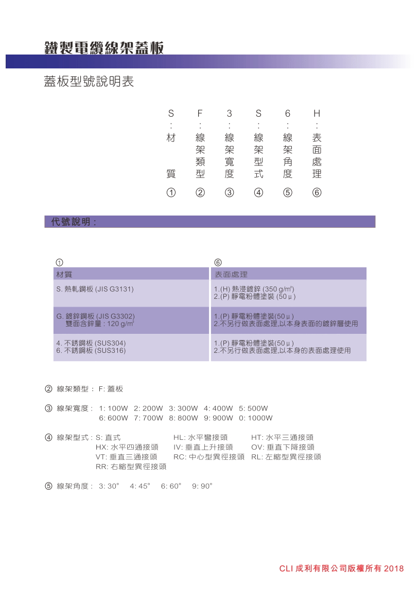 鐵製電纜線架蓋板型號說明表